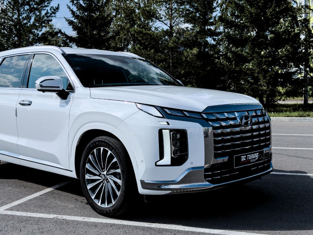 Дополнительно бронеплёнкой защищены внешние пороги, хромированные вставки и глянцевые стойки дверей. Выполнена также покраска расширителя, поступившего из Кореи с повреждениями.